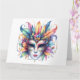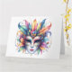 Una Colorida Tarjeta De Máscara De Fantasía. Una tarjeta para cualquier ocasión. Ir al festival, el Mardi Gras, tiempo de Carnaval. Una carta divertida y lujosa. Plumas y diversión. Esta tarjeta está en blanco en su interior para que escriba su propio mensaje Disponible como descarga instantánea para que pueda transferirla a otros productos de la tienda.