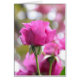 rosas rosas nítidas con reflejos luminosos, fotografía original con texto cambiable en el frente y en el interior. Flores coloridas mágicas para tu ocasión.