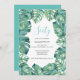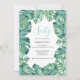 Celebra los sesenta con estilo con estas elegantes invitaciones de cumpleaños número 60, que presentan exuberantes hojas tropicales de acuarela y un respaldo azul turquesa aireado. Perfectas para celebraciones de cumpleaños de adultos, estas invitaciones son ideales para reuniones soleadas en Florida o cualquier destino tropical.