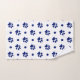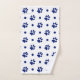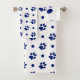 Un juego de toallas con motivos polka, azul marino y blanco.