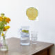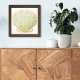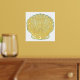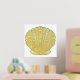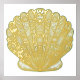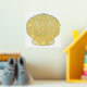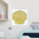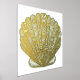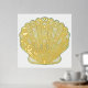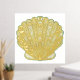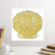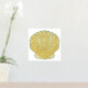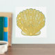 Impresión de lámina chic, con una lámina dorada y concha de almeja aqua, sobre fondo blanco.