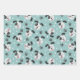 Un lindo perro negro y blanco y pequeñas huellas de pata. La combinación de las impresiones de la pata en los colores correspondientes completa el conjunto.