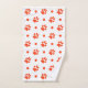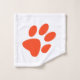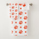 Un juego de toallas con motivos de naranja y de pata blanca y con motivos de polka dot.