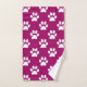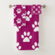 Patrón de huellas de pata blanca en el conjunto de toallas de fondo magenta