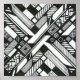 "Fractura" - Obra de Anastacia Gutiérrez: una mano de diseño abstracta dibujada en pluma y tinta, con segmentos fracturadores en forma cuadrada, con diferentes rayas diagonales y sutiles patrones de joyas, que recuerdan a una ventana de vidrio teñido de arte deco.
