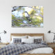 Colorida huella de pájaro con azul claro, gris y carbón negro. Decoración de paredes de tela de diseño.