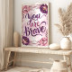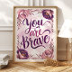 Abraza la valentía y la resiliencia con esta inspiradora impresión artística de 'Tú eres valiente'. Con tipografía audaz y escrita a mano en tonos de púrpura y rosa, adornada con un delicado marco floral de acuarela, esta pieza sirve como un suave recordatorio de tu fuerza interior. Perfecto para agregar un toque de inspiración y autoafirmación a tu dormitorio, oficina o espacio personal.
