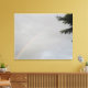 Esta impresionante huella de lienzo muestra una fotografía de un arco iris tomada justo después de una ducha de lluvia en una mañana de verano. El arcoiris está a punto de tragarse por las nubes circundantes. Se pone notablemente más pálido cuando se arca hacia un árbol en la esquina de la foto.