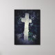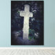 Fotografía de la antigua cruz de piedra en una huella de lienzo.