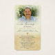 This Spanish-inspired memorial prayer card honors a loved one with the sacred image of Our Lady of Guadalupe paired with a softly faded personalized photo and In Loving Memory sentiment. Warm parchment tones and elegant script typography create a peaceful presentation, while the back features a comforting Guadalupe prayer in English accented with a gold cross. Designed to offer faith, comfort and remembrance, this card is a meaningful keepsake to share at a funeral, memorial service or Celebration of Life. Small and portable size of 3.5x2" (wallet-sized). Personalization makes these custom cards unique.