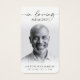Keep the memory of a loved one close with this custom personalized prayer card featuring one treasured photo, the sentiment IN LOVING MEMORY, name and dates on the front and an editable heartfelt remembrance message accented with a simple cross on the back. With its simple yet elegant classic black and white design and modern script typography, it makes a meaningful keepsake to share at a funeral, memorial service or Celebration of Life and offers comfort and a lasting tribute for family and friends. The sample shows a B&W photo--if uploading a color photo that you want B&W, you can use the B&W filter in the EDIT menu. Its small and portable size of 3.5x2" (wallet-sized) makes it convenient for loved ones to carry it with them as a reminder of your loved one’s life and spirit. Personalization makes each card unique.
