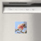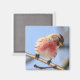 Imán cuadrado con foto de pájaro común de Redpoll inclinando la cabeza.