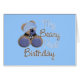 Un oso de peluche lindo del muchacho del cumpleaños con el suéter ligero del argyle de los azules cielos y el gorra azul dice que mi primer cumpleaños de Beary hace un gran 1r regalo de cumpleaños para el muchacho del cumpleaños.