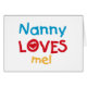 La nana me ama camisetas, tarjetas, pegatinas, bolsas de pantalones y más con un colorido diseño de corazón y texto rojo, amarillo y azul. ¡Esta nana me ama ropa y artículos de regalo hará sonreír a la nana!