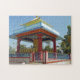 Una hermosa vista de una rueda de oración en una aldea de asentamientos tibetanos en el sur de India impresa en un rompecabezas.