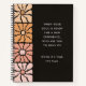 Cuaderno de flores retro boho para reflexionar sobre uno mismo... Sobre un fondo negro regaliz chic, una orla de flores boho llamativas atrae la mirada hacia una frase sincera que te recuerda reflexionar sobre tu vida y especialmente sobre las creencias limitantes o bloqueos internos que pueden estar impidiéndote vivir tus sueños y disfrutar de nuevas experiencias y aventuras que tu alma anhela. Todos hemos pasado por eso... y escribir en un diario es una forma personal y privada de explorar las posibilidades que has estado evitando. La parte posterior del cuaderno muestra 10 temas de escritura para iniciar tu aventura de reflexión en un diario. Palabras y diseño de Barbara Casey, escritora inspiradora.