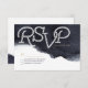 Moda moderna diseño simple y tipográfico RSVP sobre fondo de color azul índigo oscuro, ideal para bodas modernos, bodas nocturnos o bodas náuticos. Vea todas las piezas coincidentes de la colección de abajo.