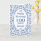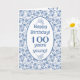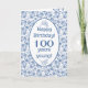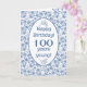 Una tarjeta de cumpleaños número 100 muy bonito, con un patrón floral azul índigo en la cubierta frontal y un guarnecido de encaje falso en el interior, donde también se puede personalizar el mensaje. Este diseño forma parte de la colección Posh y Painterly 'Indigo' y se puede ajustar fácilmente para que se ajuste a cualquier tamaño de tarjeta.