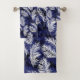 Hojas de palmera blancas en un fondo azul índigo, recubiertas con más palmeras azules. Perfecto para las habitaciones asiáticas, de cabaña o de playa.