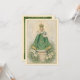 This prayer card features the Infant of Prague clothed in rich emerald green, surrounded by shamrocks, white lilies, and ivory roses in a softly painted vintage devotional style. The sacred image evokes Ireland’s deep Catholic heritage and the mystery of the Most Holy Trinity symbolized by the shamrock.