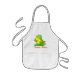 Un delantal blanco de los niños con una rana y un "gribbet lindos, verdes, gribbet…" en letras rojas.