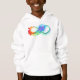 Símbolo infinito multicolor con medusa brillante arcoiris decorado con largos tentáculos sobre fondo blanco. Mariscas arcoiris.