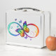 Multicolor, brillante, símbolo del infinito con arco iris, detallado monarca de mariposa. Mariposa arcoiris. Infinito arcoiris.
