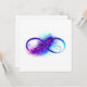 Símbolo infinito con una hermosa pluma pintada de color violeta y azul brillante sobre fondo blanco.