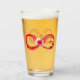 Símbolo infinito de flujo continuo de vino tinto vertiendo en vidrio de vidrio sobre fondo blanco.