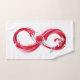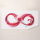 Símbolo infinito de flujo continuo de vino tinto vertiendo en vidrio de vidrio sobre fondo blanco.