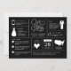 Esta infografía, que guarda la fecha, muestra hechos divertidos sobre la pareja comprometida para que puedan compartir su historia con los invitados bodas. La parte de atrás tiene una foto de sangre llena de la que pronto será novia y novio.