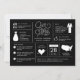 Esta infografía, que guarda la fecha, muestra hechos divertidos sobre la pareja comprometida para que puedan compartir su historia con los invitados bodas. La parte de atrás tiene una foto de sangre llena de la que pronto será novia y novio.