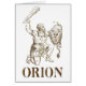 En la mitología griega, Orión era un cazador potente. Le dijeron a veces para ser el hijo de Poseidon. Él condujo las bestias salvajes fuera de la isla de Quíos y cayó en amor con Merope, hija del rey de la isla. Desaprobando Orión, el rey lo tenía cegado, pero su visión fue restaurada por los rayos del sol naciente. Él fue más adelante a Creta a vivir y a cazar con Artemis. Algunas leyendas sostienen que Apolo lo mató Artemis o fuera de celos; otro dice que un escorpión fatal lo mordió. Después de su muerte dioses lo colocaron en el cielo como constelación.