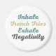 Lleve a su frigorífico o superficie magnética el sentimiento de patatas fritas y la positividad con este imán "Inhale French Fries Exhale Negativity". El recordatorio perfecto para tomar un respiro profundo, disfrutar del sabor de unas deliciosas papas fritas y soltar cualquier energía negativa. El imán duradero y de alta calidad tiene un diseño colorido y llamativo que le dará un toque de personalidad a su espacio. También es un gran regalo para cualquier amante de las papas fritas o para cualquier persona que necesite un pequeño impulso positivo. Así que, ¡inhalar el aroma de las papas fritas y la negatividad exhalante con este imán divertido e inspirador!