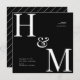 Tarjeta de ahorrar la fecha de boda con iniciales en negrita y tipografía moderna y elegante. Con tipografía moderna y elegante y diseño de respaldo a rayas.