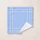 Este elegante juego de toallas está decorado con rayas azules y blancas y con iniciales de personalizable colocadas en las esquinas.