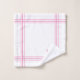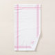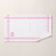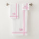 Este elegante juego de toallas blancas está decorado con rayas rosas y iniciales de personalizable colocadas en las esquinas.