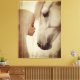 Una pintura digital tierna y soñadora que captura la conexión pura entre un niño pequeño y un caballo blanco gentil. Bañada en tonos suaves de marfil y texturas mínimas, esta obra de arte evoca emociones de amor, inocencia y confianza. Perfecta para habitaciones de niños, cuartos de niños, hogares ecuestres o cualquier espacio sereno que necesite calidez y calma. Los sutiles trazos abstractos y la iluminación angelical le dan un estética de arte fino adecuada tanto para interiores rústicos como modernos. Un regalo poético para amantes de los caballos, padres o cualquier persona tocada por la inocencia de los animales y los niños. Disponible como impresiones en lienzo, obras de arte enmarcadas, paneles de acrílico y más en todas las principales plataformas de arte mural.