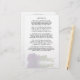 Esta inserción está diseñada como un complemento para nuestro programa plegado coincidente. Úsalo para oraciones, himnos o cualquier información adicional que sus invitados puedan necesitar. Su diseño es sencillo y agradable, con un único rosa de color malva de tallo largo que se refleja en un estanque de agua con olas y ondas. La foto se presenta como una marca de agua pálida, así que si el texto se extiende sobre ella, aún se puede leer. Una forma encantadora de añadir más funcionalidad a sus programas de bodas.