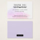 Tarjeta de agradecimiento con salpicadura de acuarela rosa y púrpura elegante con elemento decorativo. Perfecta para cualquier pequeña empresa. Para consultas sobre envío, papel de tarjeta y precios, contacte directamente con Zazzle.