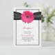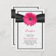 Con esta tarjeta de inserción para recepción de boda, esta brillante y alegre gerbera dalia rosa se combina con una cinta negra sobre un patrón floral de damasco gris claro. Una hermosa combinación para diversas estaciones. El texto es totalmente personalizable. Para cambiar el texto, use la opción personalizar. Para cambios de texto más extensos, como cambios en la fuente, color de fuente, tamaño de fuente o diseño de texto, use la opción personalizar. Esta tarjeta está configurada actualmente para imprimirse en el tipo de papel metálico de color hielo, pero se vería bien en cualquiera de los otros tipos de papel. Esta tarjeta también funcionaría bien como tarjeta de inserción de dirección, alojamiento y/o información general de boda. Nota: Este es un diseño plano sin adornos 3D. También puede quitar la cinta y la dalia y agregar sus propios adornos 3D a esta invitación cuando la reciba.