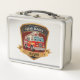 Esta caja de almuerzo metalizado personalizada cuenta con una atractiva placa para apagar incendios. En el centro de la insignia se encuentra un divertido camión de bomberos estilo personalizado infantil de color rojo intenso. La pancarta superior dice "Líder Escuadrón" mientras que la parte inferior es para el nombre de tu pequeño.
