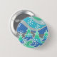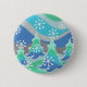 Un paisaje invernal moderno y estilizado con pinos helados y copos de nieve brillantes. Botón con un diseño personalizable azul, verde, plateado, gris y blanco para que lo personalices con tu propio texto, imágenes e ideas. Un dibujo a lápiz de colores digitalmente mejorado por Jess Perry.