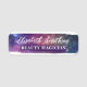 Elegante salón de belleza placa de identificación de empleado con pinceles para un ambiente artístico. Personalízalo con tu nombre y título.