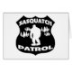 La policía negra grande badge el emblema con, a la "patrulla de Sasquatch," escrito en fuente blanca simple con una silueta blanca de Sasquatch en el centro y un fondo del árbol de pino blanco.