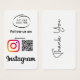 Este moderno y audaz diseño incorpora elementos esenciales: un código QR para conexiones fluidas de medios sociales, que invita a los clientes a 'seguirnos' en Instagram. Eleva tu negocio con un toque elegante y promocional. Sube tu logo Nombre de usuario de Instagram y ya has terminado! Ahí tienes tu menú personalizado Los signos QR aumentan los seguidores de los medios sociales. Síguenos en una nueva era de promoción de negocios