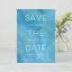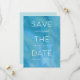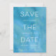 Moderno pero costero ahorra el diseño de fecha en las características sans serif y cursiva en blanco crudo, con sus nombres, fecha de boda y ubicación intercalados con "guardar la fecha". Un lavabo acuático de tonos océano de color turquesa, verde azulado y azul añade un encanto playero elegante. Personaliza con tu información de invitación y/o sitio web de bodas a lo largo de la parte inferior. Una moda de playa permite guardar el diseño de fechas para bodas de verano, de destino o de playa.