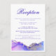 Una tarjeta de boda con el recinto adornada con hermosas pinturas de tinta alcohólica en colores violeta, púrpura, azul y rosa. Una elegante tarjeta de detalles con "Recepción" en la parte delantera y "Direcciones" en la parte trasera. La tipografía se acentúa con ricos tonos de joyas en remolinos de color líquido de amatista y zafiro. Hermoso e intrincado como el ágate y los geodésicos. La tarjeta tiene una plantilla fácil de editar, a la que se pueden agregar los detalles del boda. Tarjeta de inscripción de instrucciones de recepción de boda púrpura abstracta. Arte abstracto original de la artista internacional Pauline Benjes.