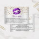 Labios de Purpurina morado y elegantes instrucciones de aplicación del diseñador de oro sobre una satén de imitación blanca. ⭐ Este Producto es 100% Personalizable. Los gráficos y el texto se pueden borrar, mover, cambiar de tamaño, girar, etc... El 99% de mis diseños en mi tienda se hacen en capas. Esto facilita el redimensionar y mover los gráficos y el texto para que encajen perfectamente en cada producto. ⭐ (Asegúrese de cambiar el tamaño o mover los gráficos si fuera necesario antes de realizar el pedido) También puede "TRANSFER DESIGN" en otros productos de Zazzle y ajustar el diseño para que se ajuste a la mayoría de los artículos de Zazzle. (el botón está en el lado derecho de la página) Algunos de los gráficos de texto están listos para rellenar los cuadros o puede pulsar sobre el botón "PERSONALIZAR" para añadir, mover, borrar, cambiar el tamaño, el color de fondo o cambiar cualquiera de los tipos de letra o gráficos. El diseño se realiza con vectores de alta resolución y/o gráficos digitales para una impresión profesional. NOTA ⭐: (ESTA ES UNA "IMPRESIÓN". Todos los diseños de productos de zazzle son "impresiones" a menos que se indique lo contrario en "Acerca de este producto") El diseño se imprimirá EXACTAMENTE como lo ves en la pantalla y en el producto...por lo tanto, asegúrese de que cuando realice sus cambios en el redimensionamiento de cualquiera de los gráficos o textos que encaja correctamente en las áreas y que su ortografía y su redacción sean como le gusta que sea en tamaño, color y fuente. Si tiene alguna pregunta sobre el "DISEÑO" o necesita ayuda, póngase en contacto conmigo en siggyscott@comcast.net o visite el enlace de mi tienda: http://www.zazzle.com/designsbydonnasiggy?rf=238713599140281212 (Copiar y Pegar) Estaré encantado de ayudarle. ⭐ Todas las demás preguntas (envío, reembolso, impresión, producto, etc...) por favor contacte con Zazzle o el Maker ⭐ DIRECTAMENTE ⭐. Gracias por el apoyo y por parar por mi tienda - DesignsbyDonnaSiggy. © Donna Siegrist