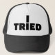 INTENTÉ la diversión y el lema irónico en el gorra del camionero, negro, declaración tipográfica divertida, inspirada por rossitano de la carta franca del carácter de la comedia de la TV.